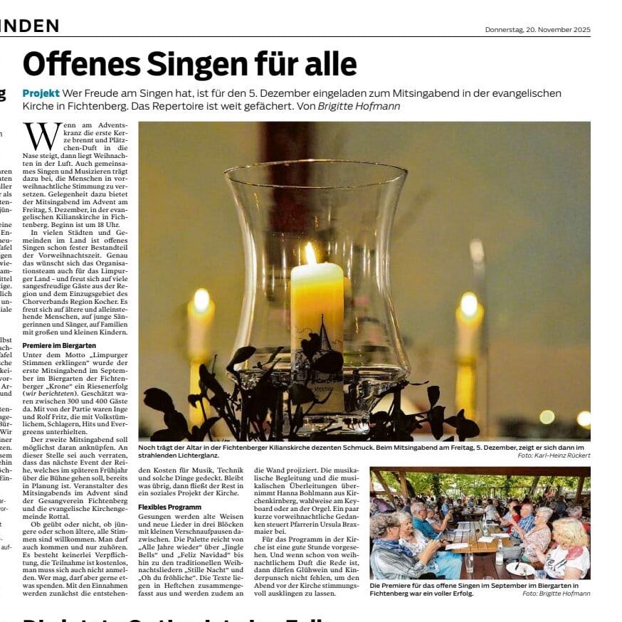 Bevor sie in die Tagesordnung einstieg, gedachte sie der im vergangenen Jahr verstorbenen Mitglieder. Eine Fülle von Bildern dokumentierten ihren Bericht vom vergangenen Vereinsjahr. Ein ganz großes Highlight war die Reise durch die Teilorte in Fichtenberg, die ihren Höhepunkt in einem wunderschönen open air Konzert im Biergarten fand. Mit dabei der Männerchor aus Oberrot. Im Herbst wurde dann fleissig auf das Bürgerstiftungsfest geübt. Gemeinsam mit Bürgermeister Glenk wurde dieser Festakt musikalisch untermalt. Ebenfalls im Herbst gab sich der Schwäbische Chorverband mit seiner Tagung in Fichtenberg ein Stelldichein. Auf diesem übernahmen wir die Bewirtung und sorgten für den nötigen Chorspirit.